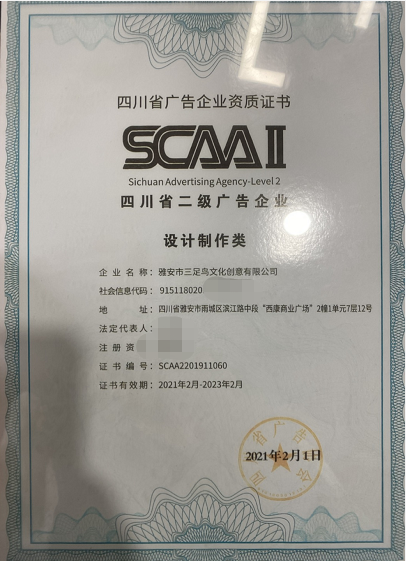 三足鳥文創(chuàng)獲得四川省二級廣告企業(yè)認證